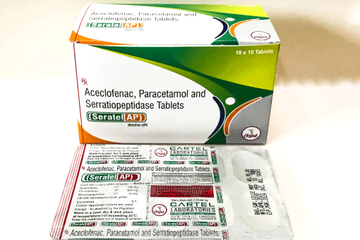 Aceclofenac 100 mg + Para 325 mg Serratiopeptidase 10 mg Tabs
